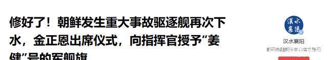 这场“造船奇迹”的最终成色,或许要等到它真正接受战火考验的那一天才能揭晓。但无论如何,“姜健”号的重生,都为朝鲜海军发展史写下了浓墨重彩的一笔——在技术封锁与资源匮乏的夹缝中,朝鲜用22天证明:有些奇迹,真的可以用意志和汗水创造。 汉水襄阳——修好了!朝鲜发生重大事故驱逐舰再次下水,金正恩出席仪式,向指挥官授予“姜健”号的军舰旗